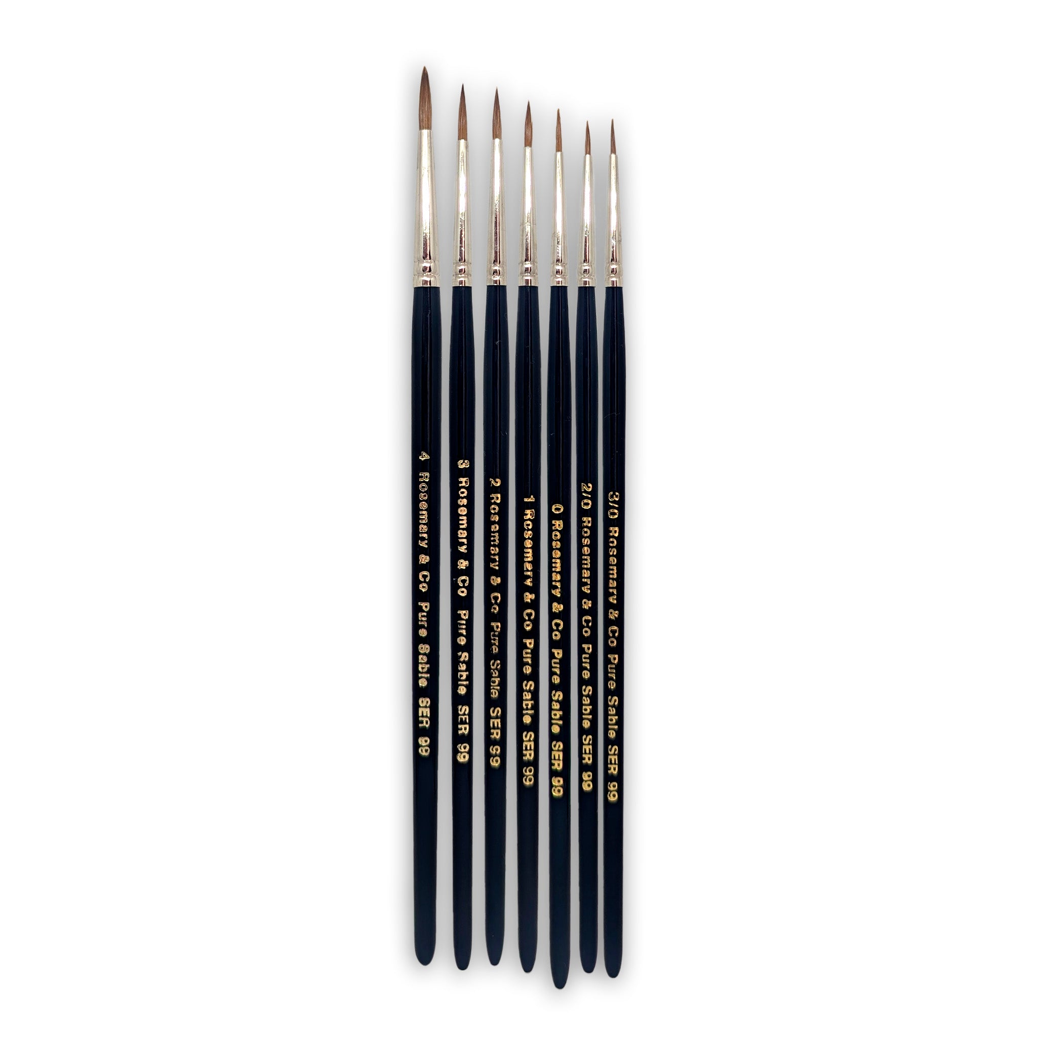 Rosemary & Co Series 99's have a round ferrule and typically will come to a beautiful, sharp point. The smaller sizes are outstanding for fine detail work, while the size 4 is a great choice for applying Shade or Contrast paints to larger areas.